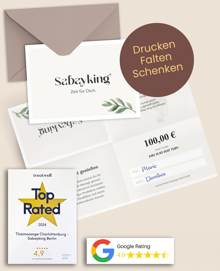 Ob für Sie selbst oder als Geschenk: Eine Massage bei Sabayking in Berlin-Charlottenburg bringt Körper und Geist in Einklang. Jetzt Termin buchen oder Gutschein sichern!